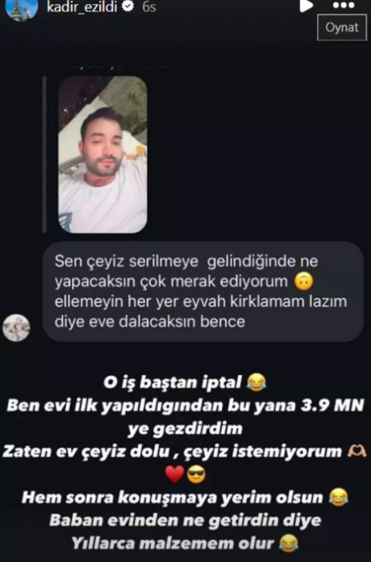 Kadir Ezildi ise "Şu an bir kız arkadaşım var. Sohbet ederken günlük duş almayı sevdiğimi belirtiyorum. Ben tabii ki hayat arkadaşımın da bakımlı olmasını isterim. Nefes kokusu, saç kokusu en nefret ettiğim şey." demişti.