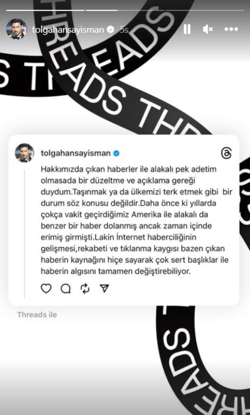 Konuyla ilgili ise Tolgahan Sayışma bir açıklama yaptı ve söylenildiği gibi ülkesini terk etmediğini açıkladı.