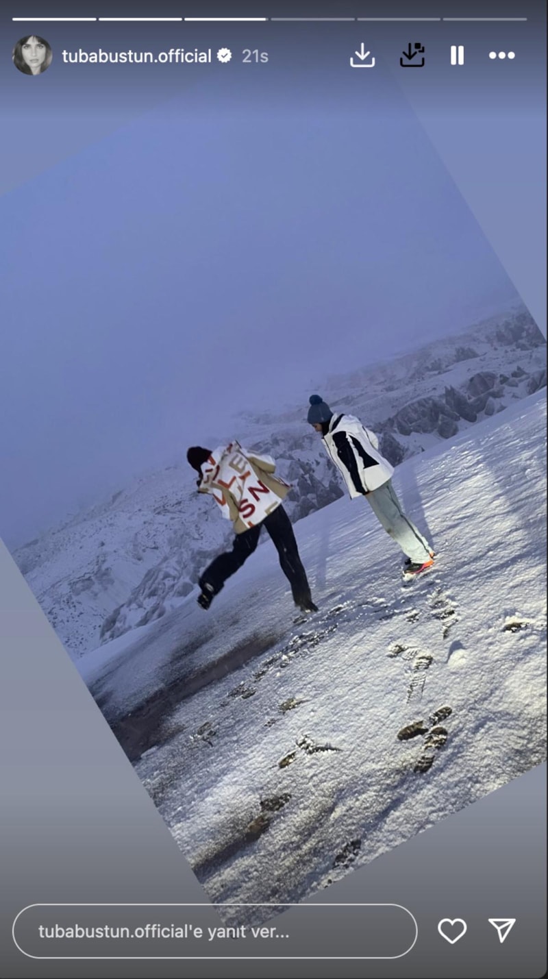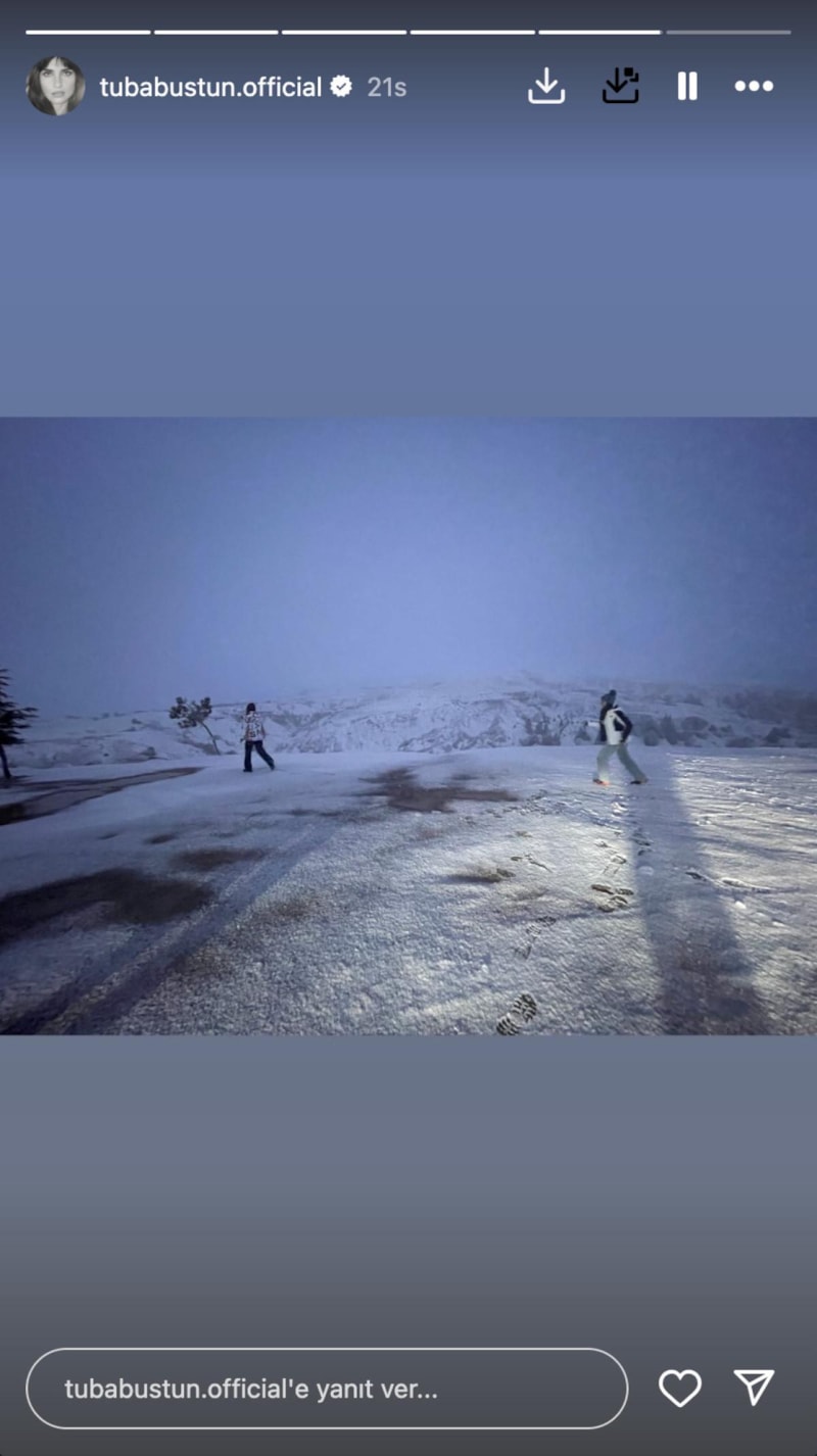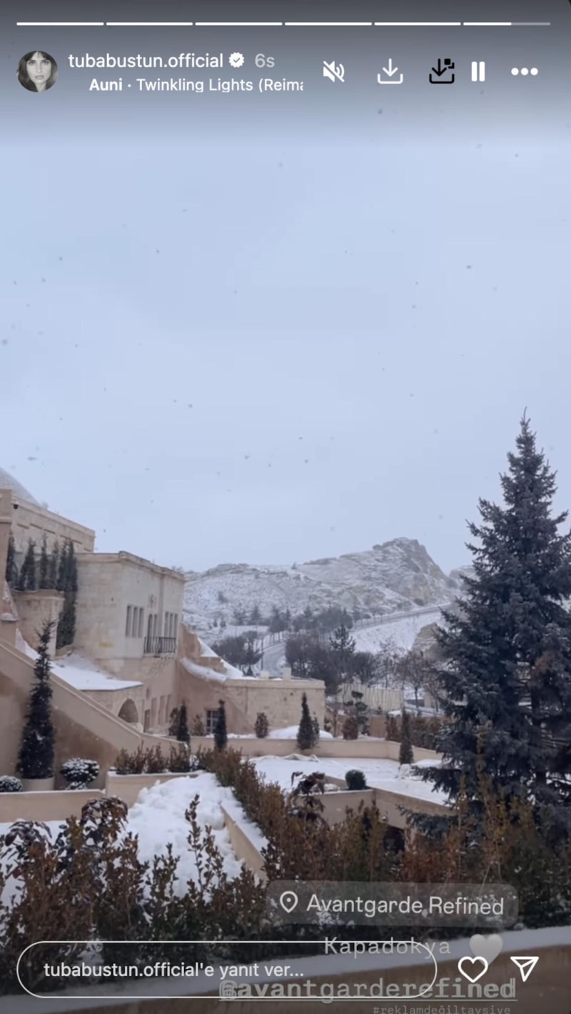 Tatilden kareler paylaşmayı sürdüren ünlü oyuncu, konakladığı otelden çektiği büyüleyici kar manzarasını da sosyal medyada takipçileriyle paylaştı.