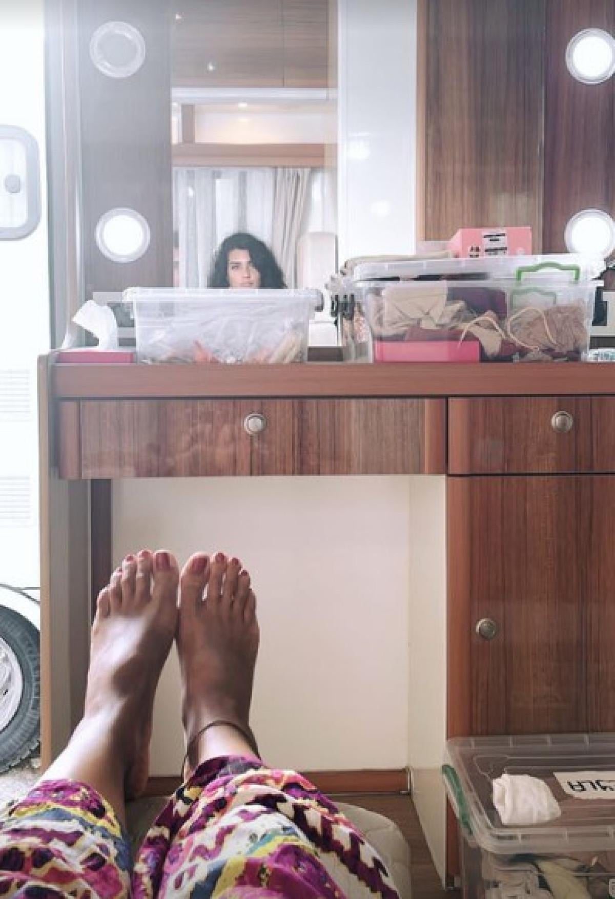 Büyüküstün bu defa karavandan fotoğraf yükledi. Set arasında kendi özel karavanında dinlendiği anları yayınlayan Büyüküstün, ayaklarını paylaştı.