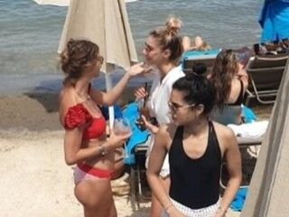 Sevgililer tüm gün denizin ve güneşin tadını çıkarırken; el ele denize girip aşka geldi. Çeşme'deki plajda sarmaş dolaş gezinen çifte, bir ara Acun Ilıcalı'nın eski eşi Şeyma Subaşı da katıldı.