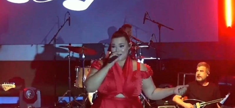 Tekirdağ'ın Saray ilçesinde konser veren ünlü sanatçı Tuğçe Kandemir, sahneye çıktığı anda dengesini kaybederek yere düştü.