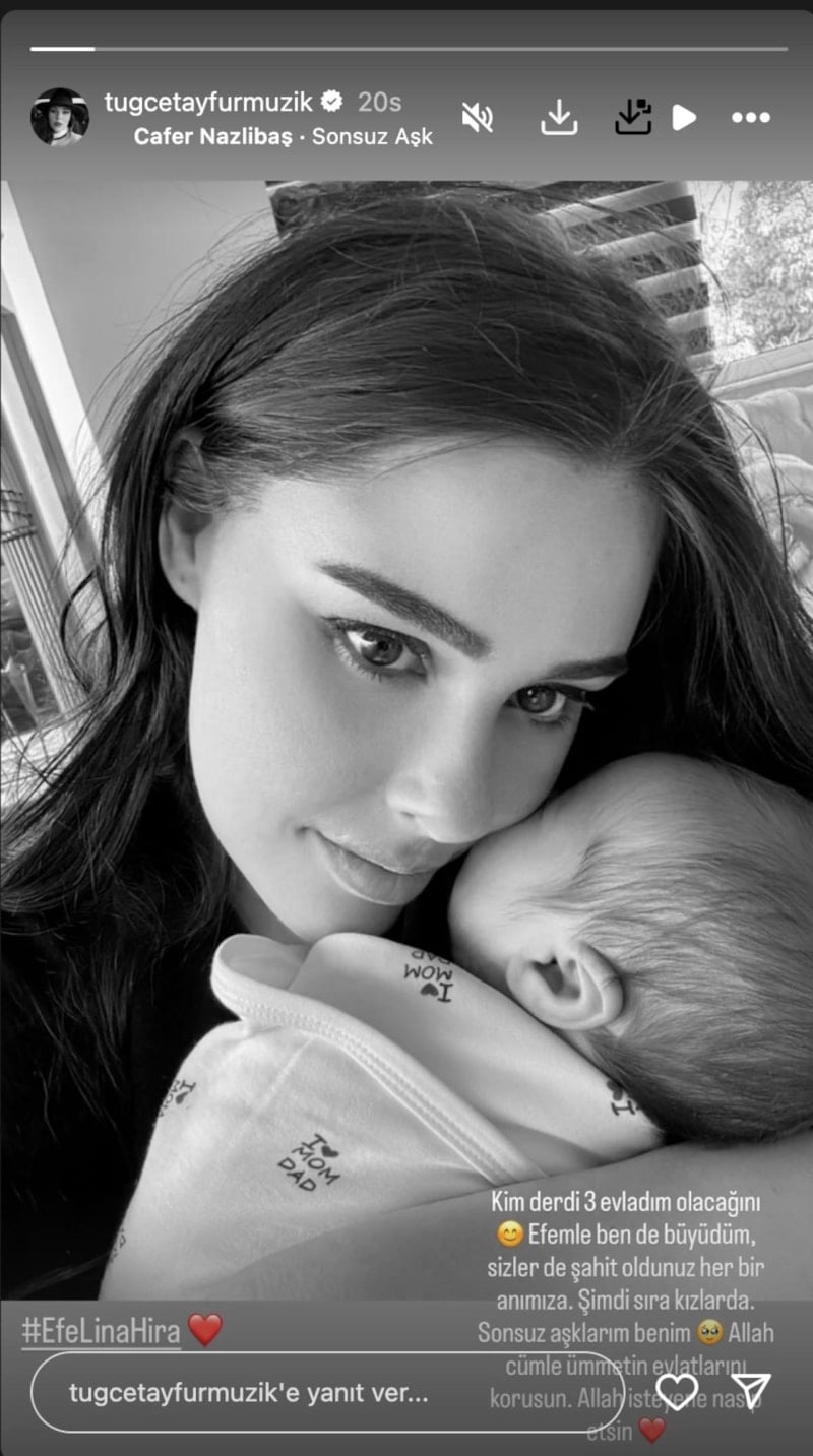 Şarkıcı, kızı Necla Hira ile birlikte yer aldığı fotoğrafa; "Kim derdi 3 evladım olacağını. Efe'mle ben de büyüdüm, sizler de şahit oldunuz her bir anımıza. Şimdi sıra kızlarda. Sonsuz aşklarım benim. Allah cümle ümmetin evlatlarını korusun. Allah isteyene nasip etsin." notunu düştü.