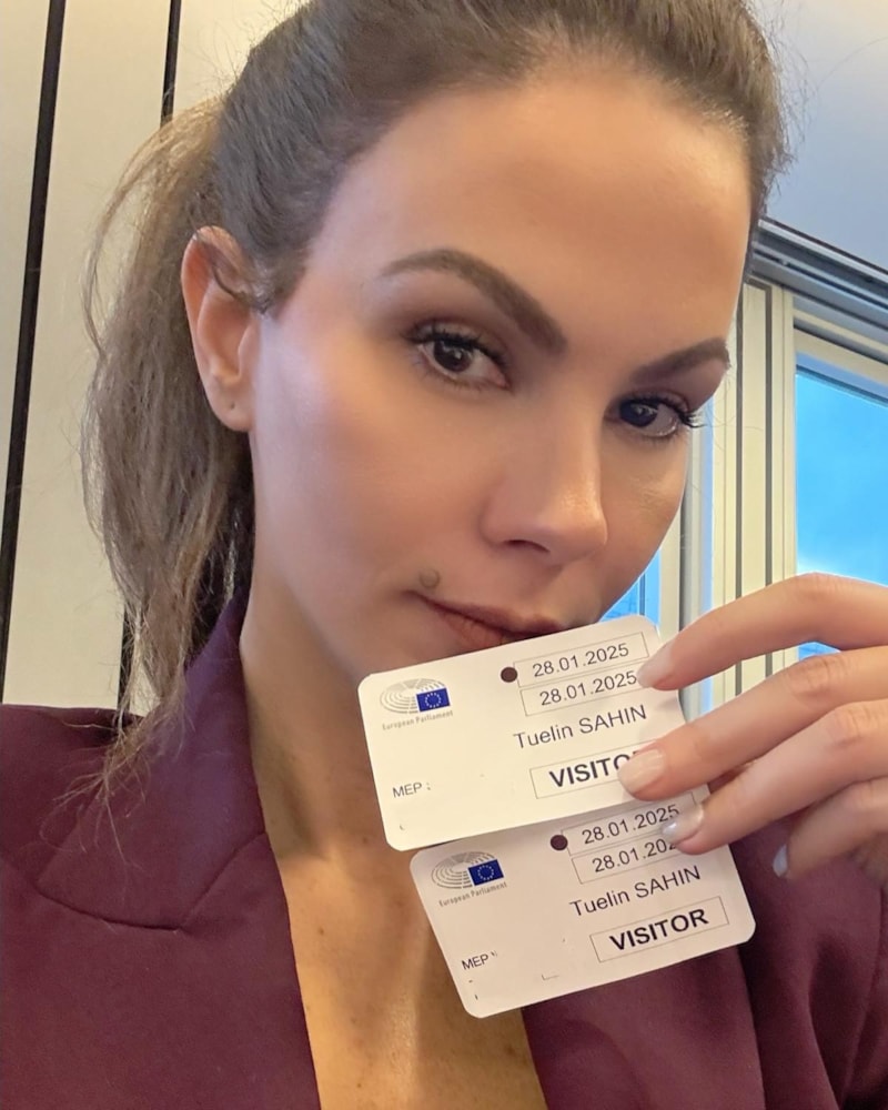 Avrupa Parlamentosu’na adım atan ilk süper model olan Şahin, konuşmasıyla ve sorulara verdiği yanıtlarla kendisine hayran bıraktı.