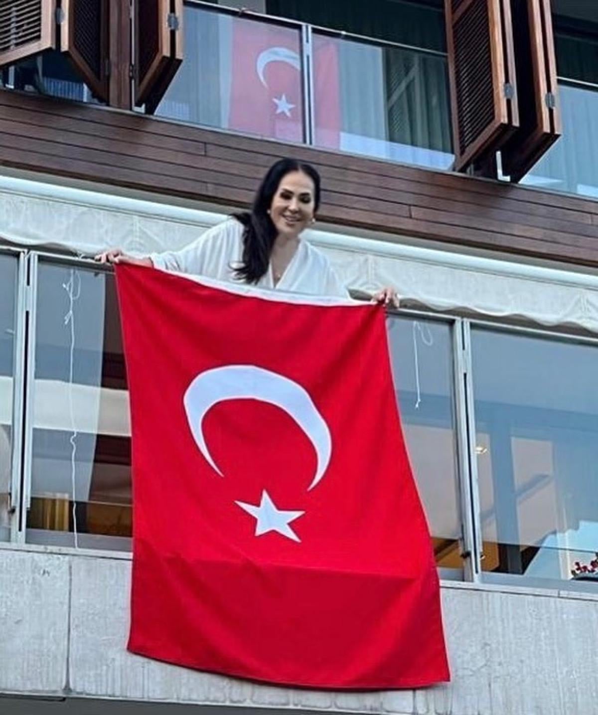 Şoray, evinin balkonuna Türk bayrağını astığı kareyi takipçileriyle paylaştı.