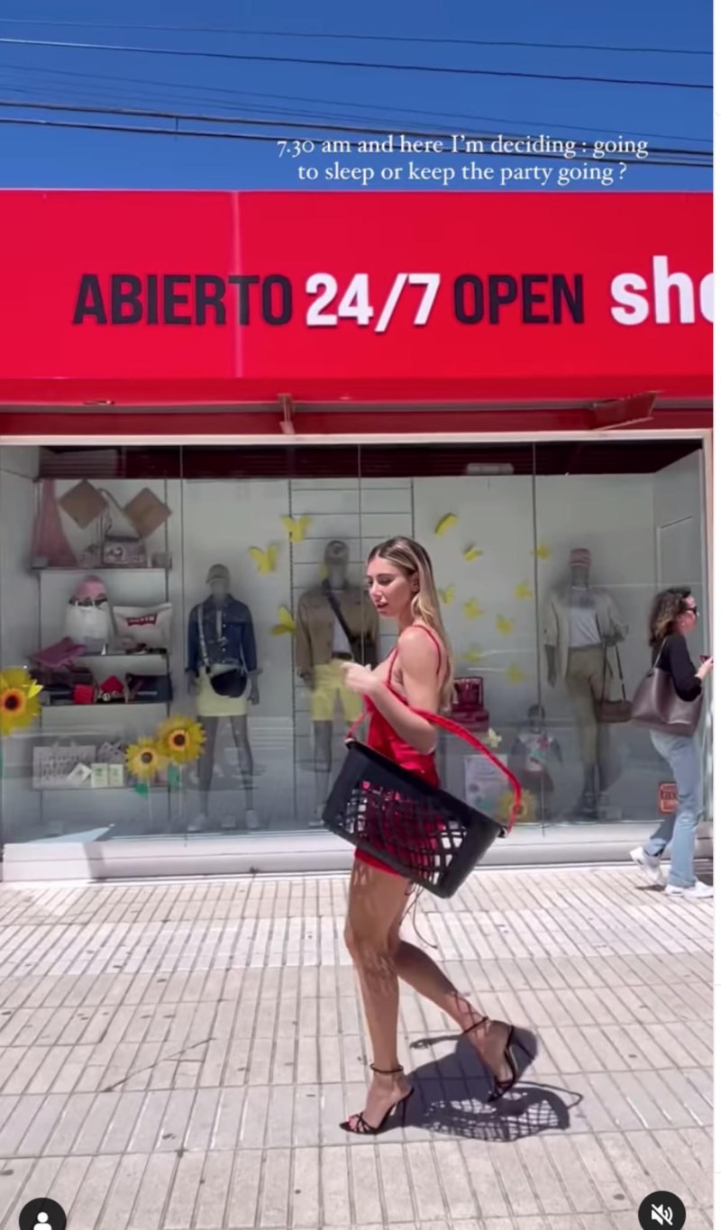 Kırmızı mini elbisesiyle sokağa çıkan Subaşı, market sepetini koluna takıp defalarca turladı.