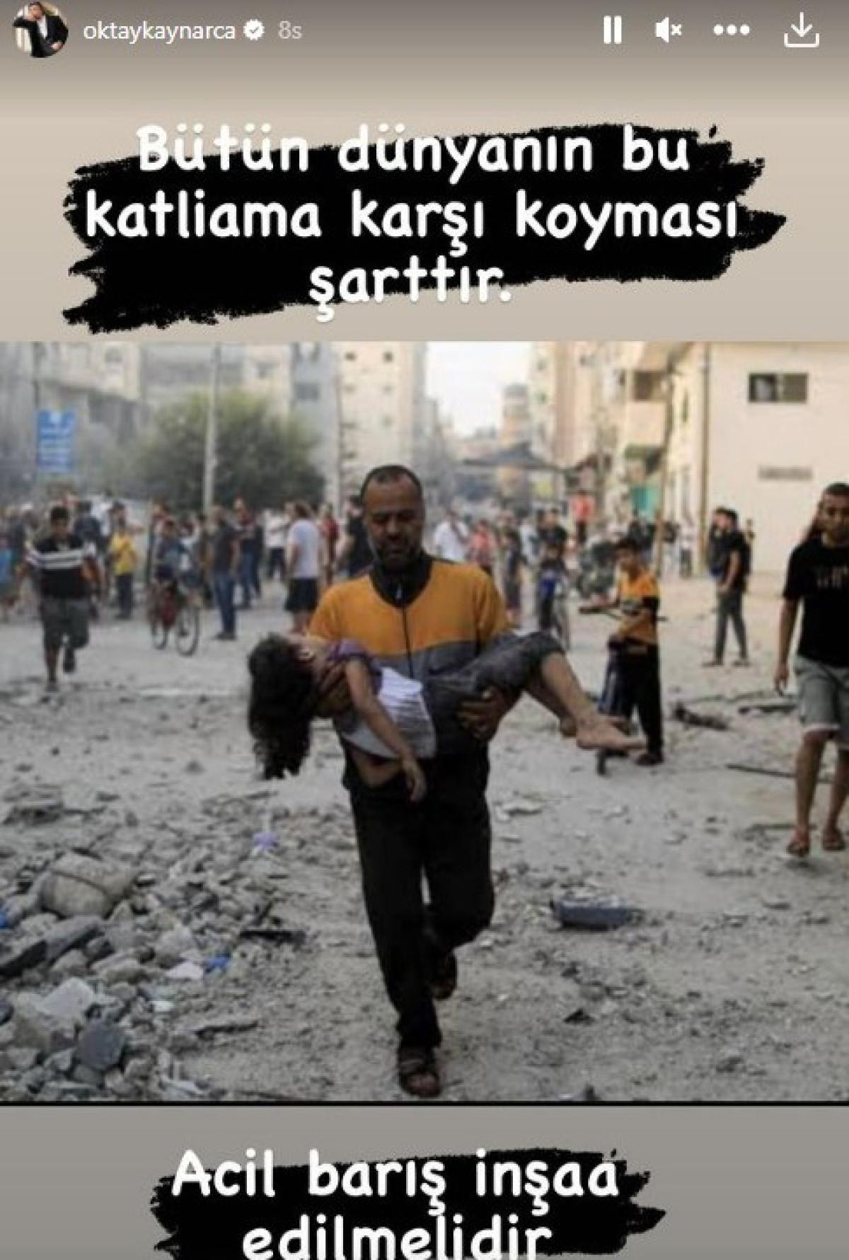 Oktay Kaynarca, paylaşımında "Bütün dünyanın bu katliama karşı koyması şarttır. Acil barış inşa edilmelidir" çağrısında bulundu.