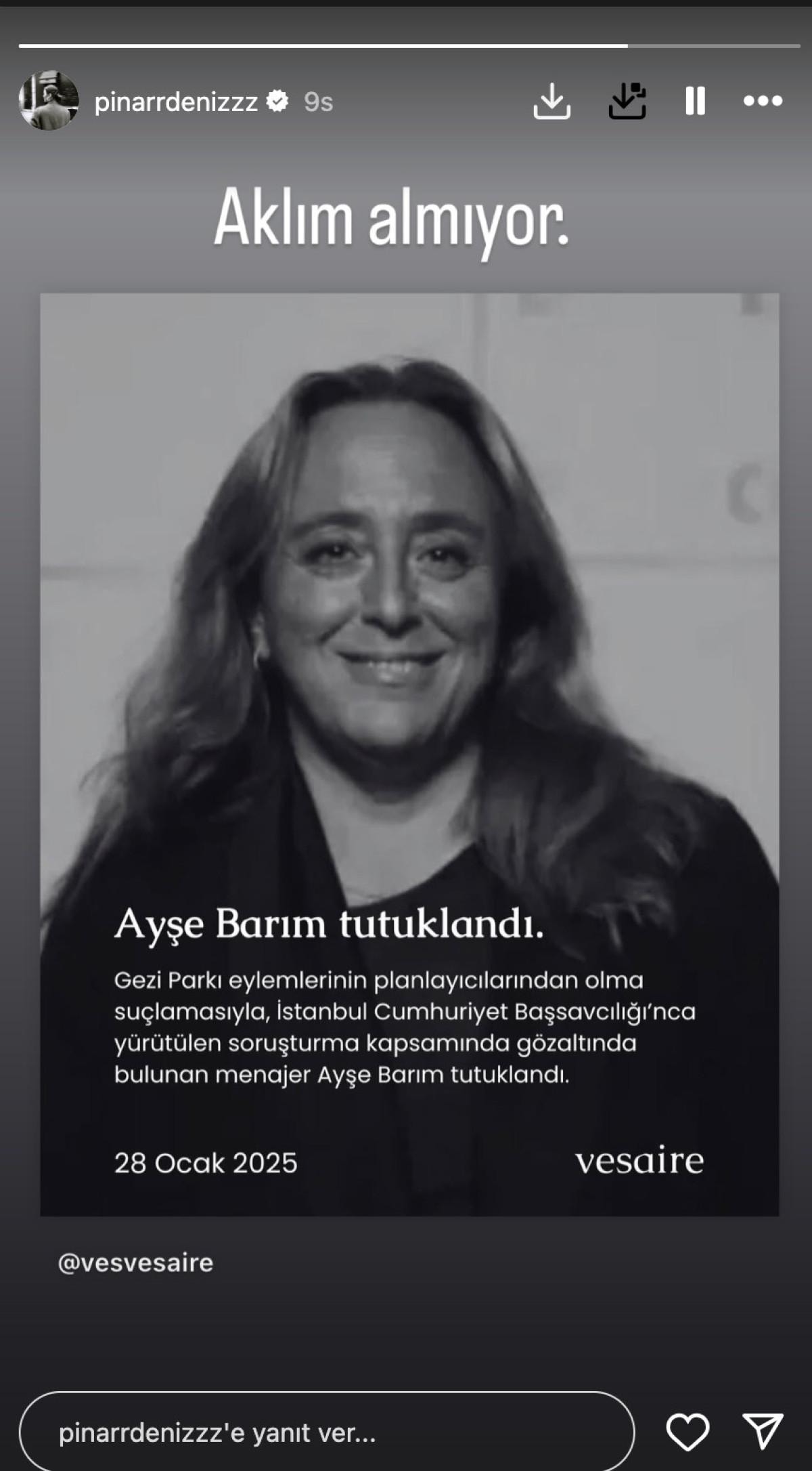 Haftalardır gündemde olan en popüler ünlü isimleri menajeri Ayşe Barım, Gezi Parkı olaylarında sanatçıları eylemlere katılması için yönlendirdiği, Osman Kavala gibi sanıklarla yoğun iletişimde olduğu tespit edildiği ve olayların planlayıcılarından olduğu iddia edilerek gözaltına alınmıştı.