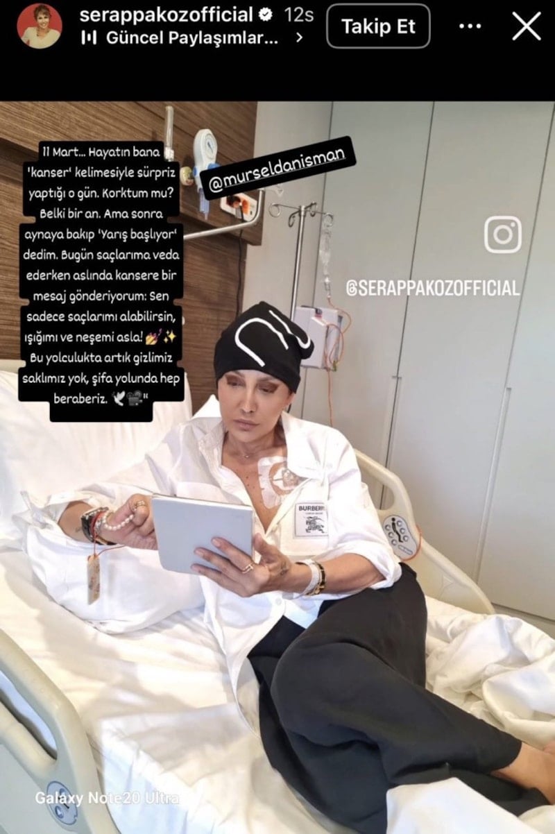 Ünlü sunucu Serap Paköz, hastane odasından yaptığı paylaşımda meme kanserine yakalandığını ve tedavi gördüğünü söyledi.