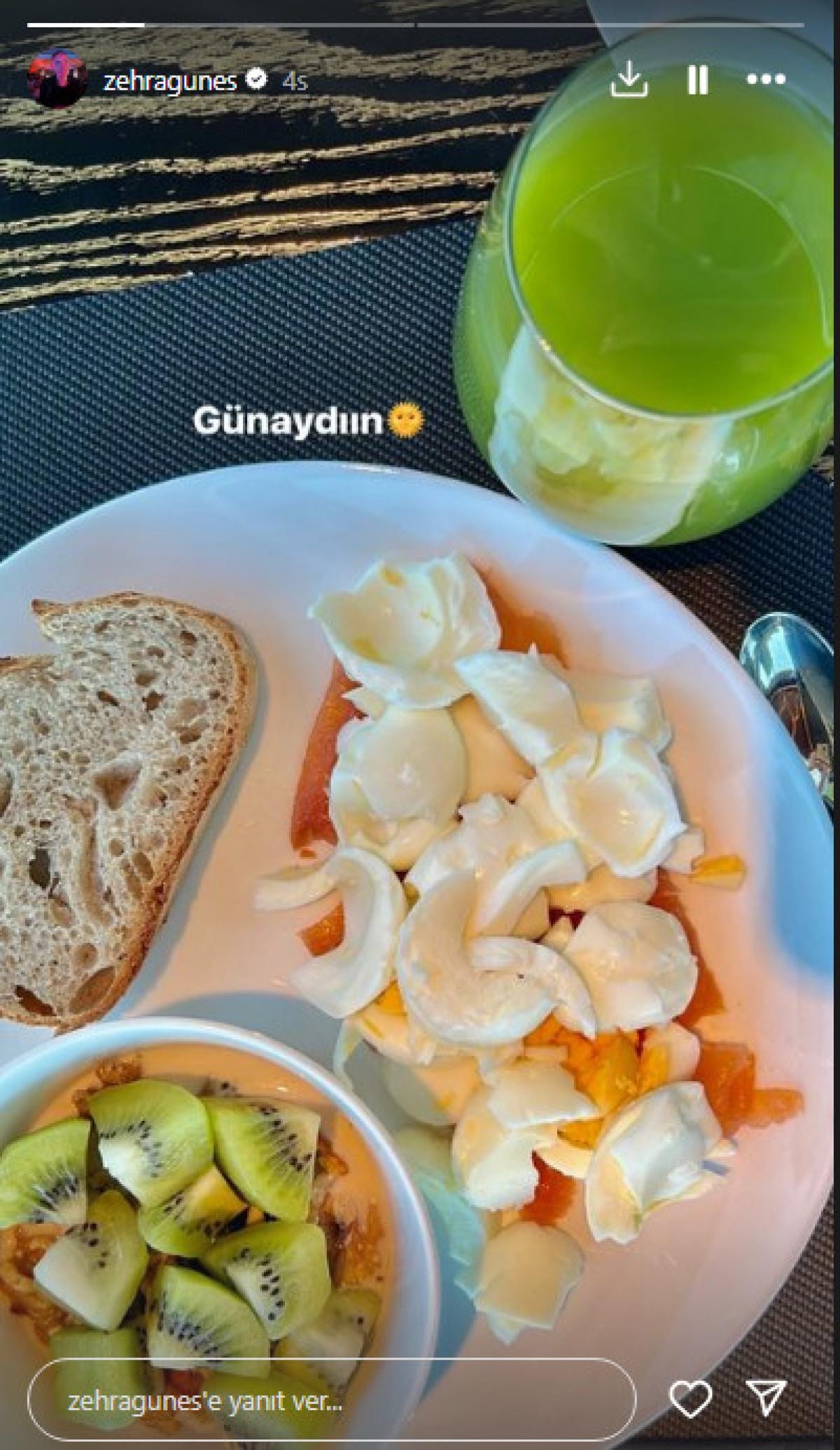 Sosyal medyada aktif olan Zehra Güneş, bu defa 'günaydın' notunu düştüğü paylaşımıyla gündem oldu. Bir öğünü takipçilerine gösteren Güneş'in tabağındakiler ve içeceği dikkat çekti.
