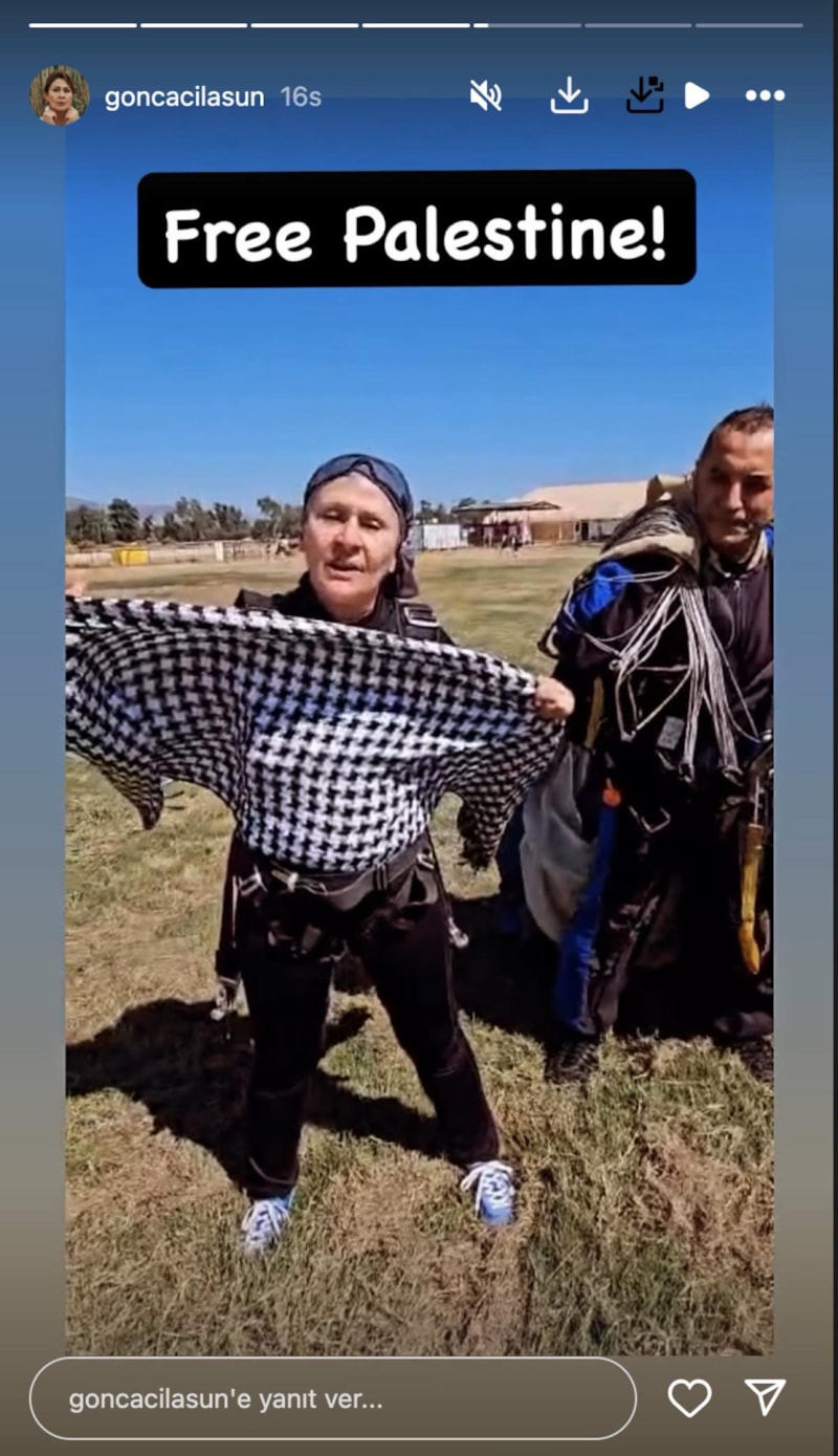 Oyuncu ayrıca atlayış sonrası Filistin kefiyesi açarak "Filistin'e özgürlük" dedi.
