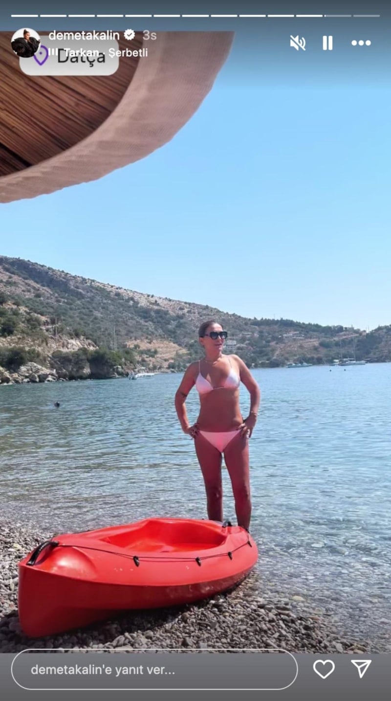 Bikinili pozlarını peş peşe paylaşan Akalın'a sosyal medyada ise yorum yağdı.