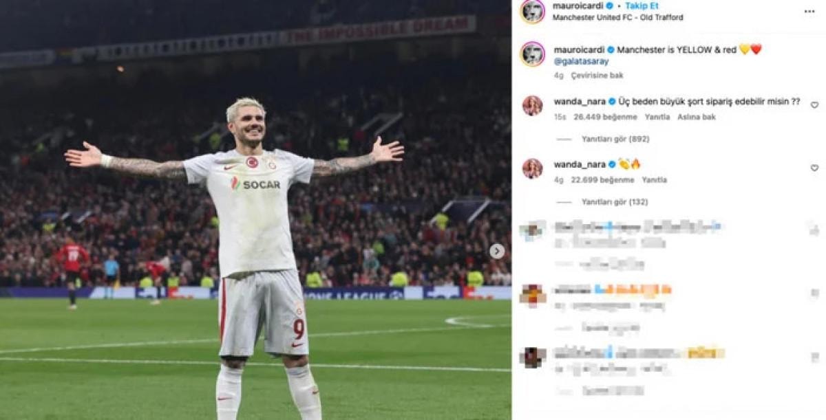 Wanda Nara, fotoğrafın altına "Üç beden büyük şort sipariş edebilir misin?" yorumunda bulundu.