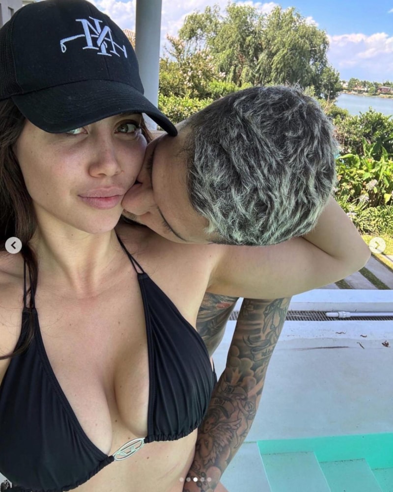 Siyah bikinisiyle poz veren Wanda Nara'yı eşi Icardi öpmelere doyamadı.
