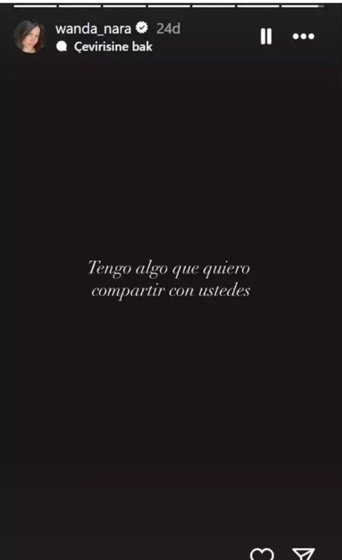 Süper Lig'de Alanyaspor deplasmanında kritik bir maça çıkacak Galatasaray'da maç öncesinde Mario Icardi'nin eşi Wanda Nara'dan dikkat çeken bir paylaşım daha geldi. Başarılı futbolcunun eşi Nara, Instagram hesabının hikaye bölümüne "Sizinle paylaşmak istediğim bir şey var." yazdıktan sonra sessizliğe büründü.