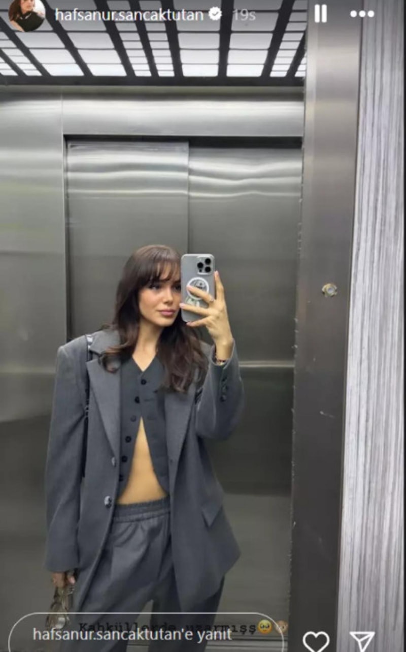 Güzel oyuncu Hafsanur Sancaktutan bu defa ilginç tarzıyla dikkat çekti. Ünlü oyuncu düğmelerini sonuna kadar açıp ayna karşısında poz verdi.