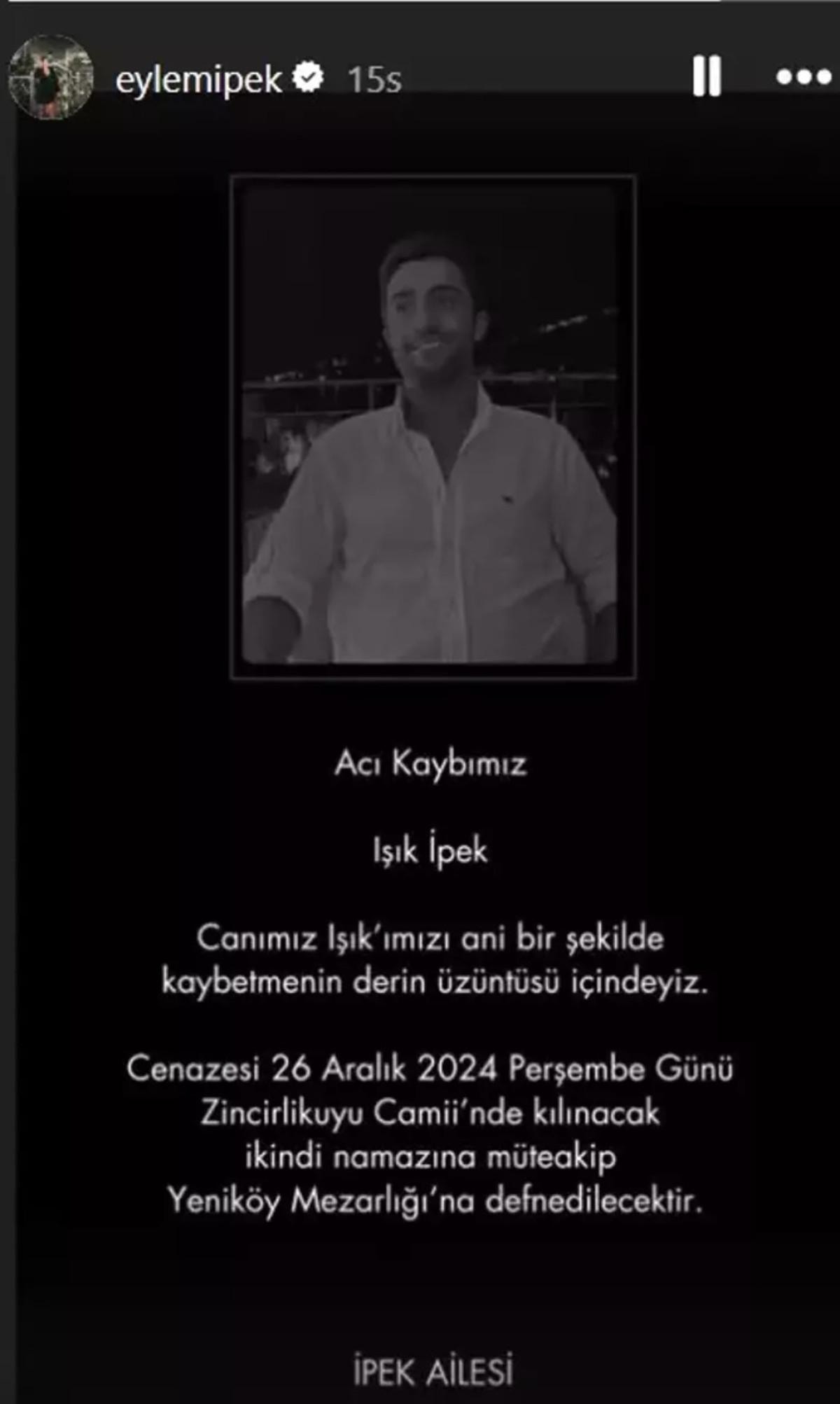 "Dostumuz, Gazete Magazin Kurucusu ve Yapımcı Eylem İpek Şafak'ın kıymetli kardeşi, meslektaşımız Işık İpek'i kaybetmenin derin üzüntüsünü yaşamaktayız. Merhuma Allah'tan rahmet, ailesine ailesine ve tüm sevenlerine baş sağlığı ve sabırlar dileriz."