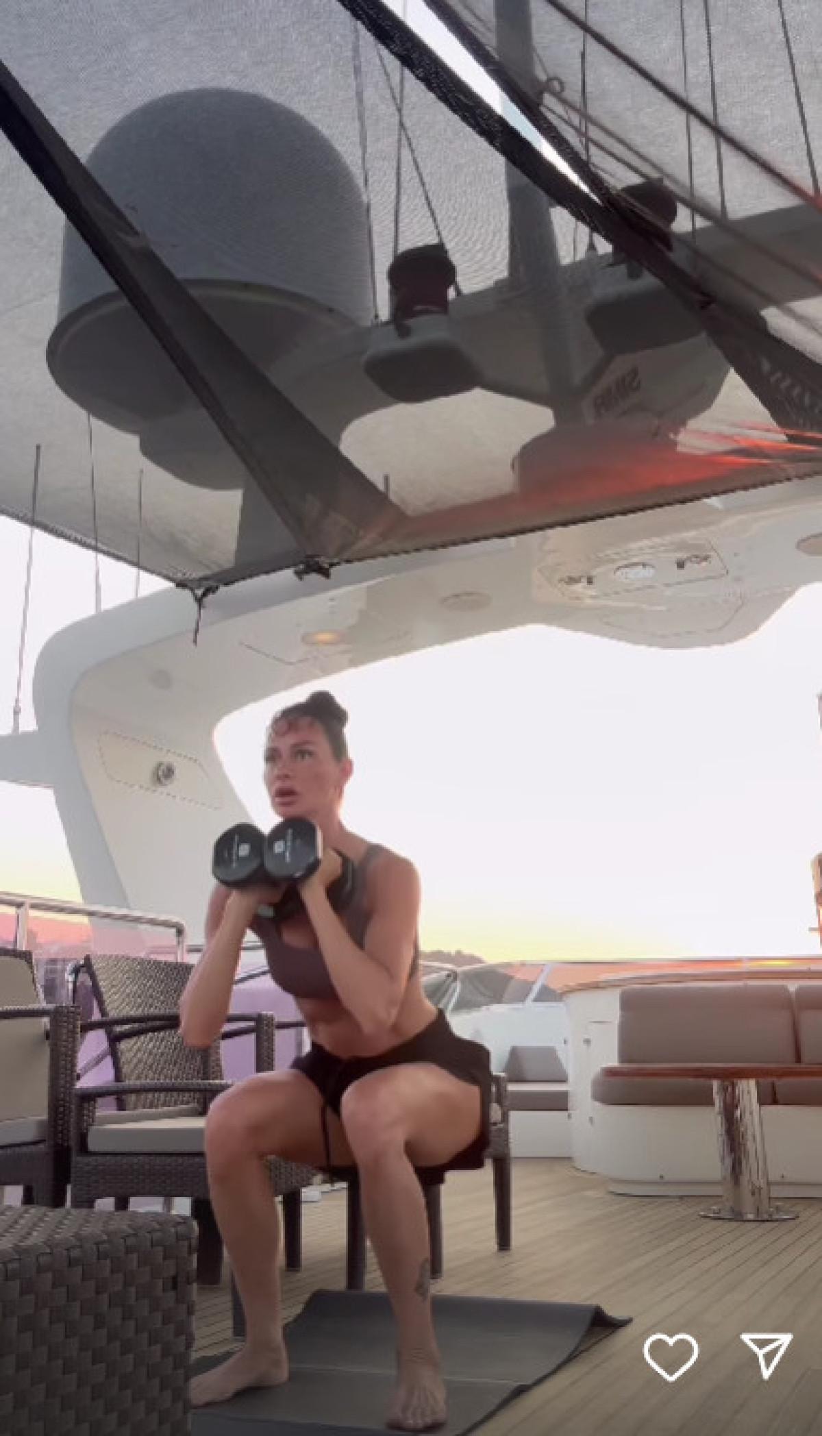 Tekne tatiline çıkan ve sporunu eksik etmeyen eski oyuncu, o anları da yayınlamayı ihmal etmedi.