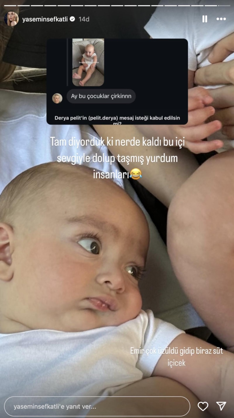 Ancak ikili sosyal medyadan yaptıkları paylaşımlarda bebeklerinin yüzünü kapatmayı tercih etti. Yasemin Şefkatli, bebeklerin yüzünü paylaşmak istediğini ancak eşi İdo'dan izin alması gerektiğini de söyledi.