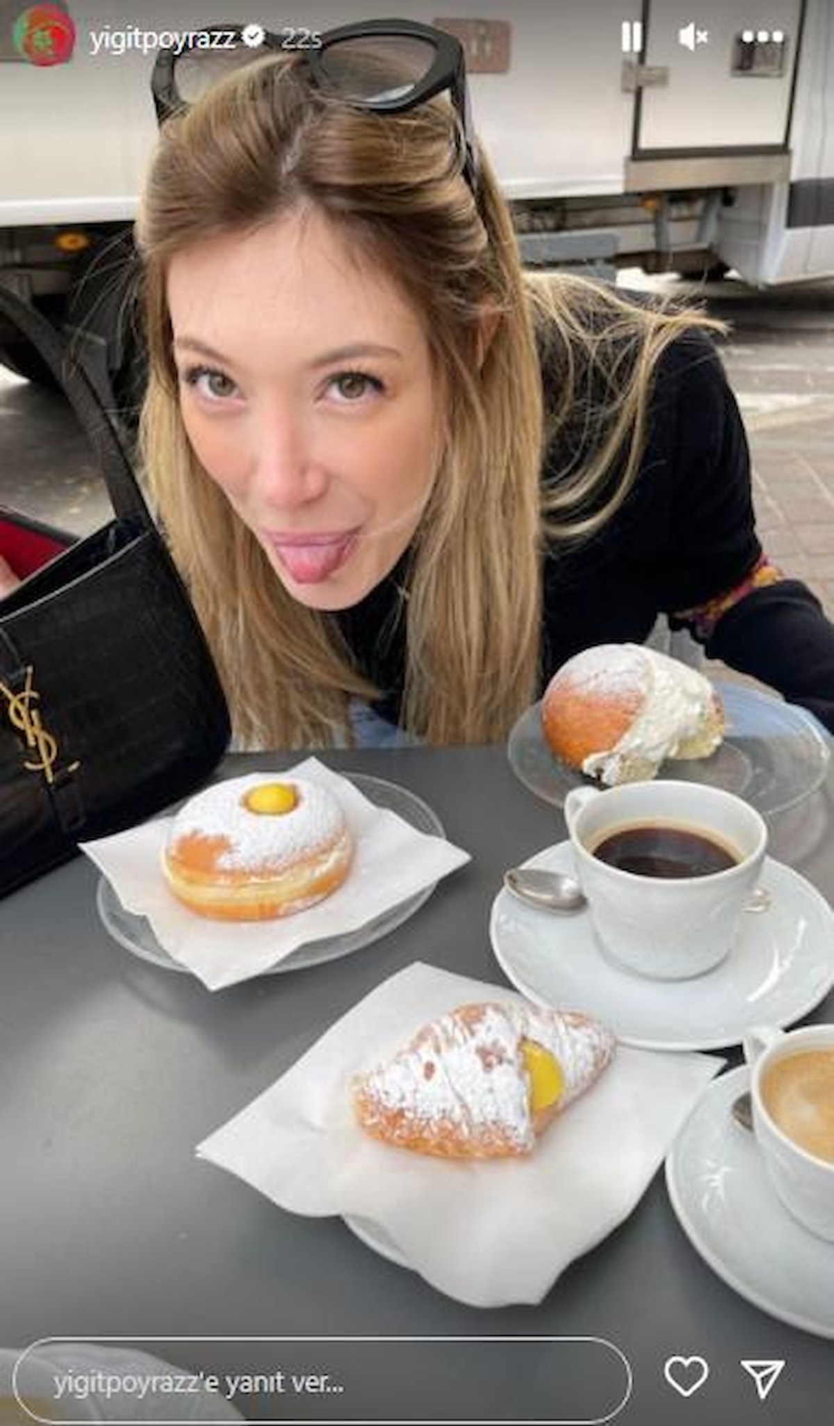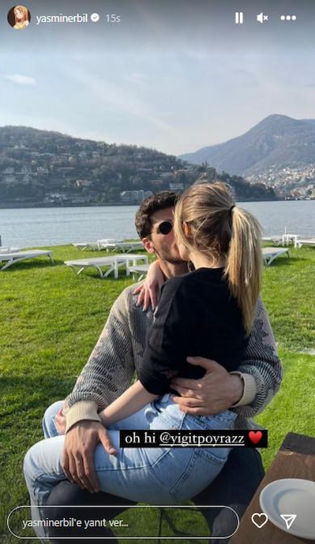 Aşkını gizlemeyen Yasmin Erbil, sevgilisinin kucağına oturduğu ve öpüştükleri anları da yayınladı. Romantik anlar sosyal medyada beğeni topladı.