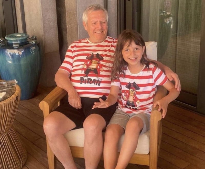 Paylaşımda baba-kızın aynı tasarıma sahip, kırmızı-beyaz çizgili ve "Little Pirate" yazılı tişörtler giydiği görüldü.