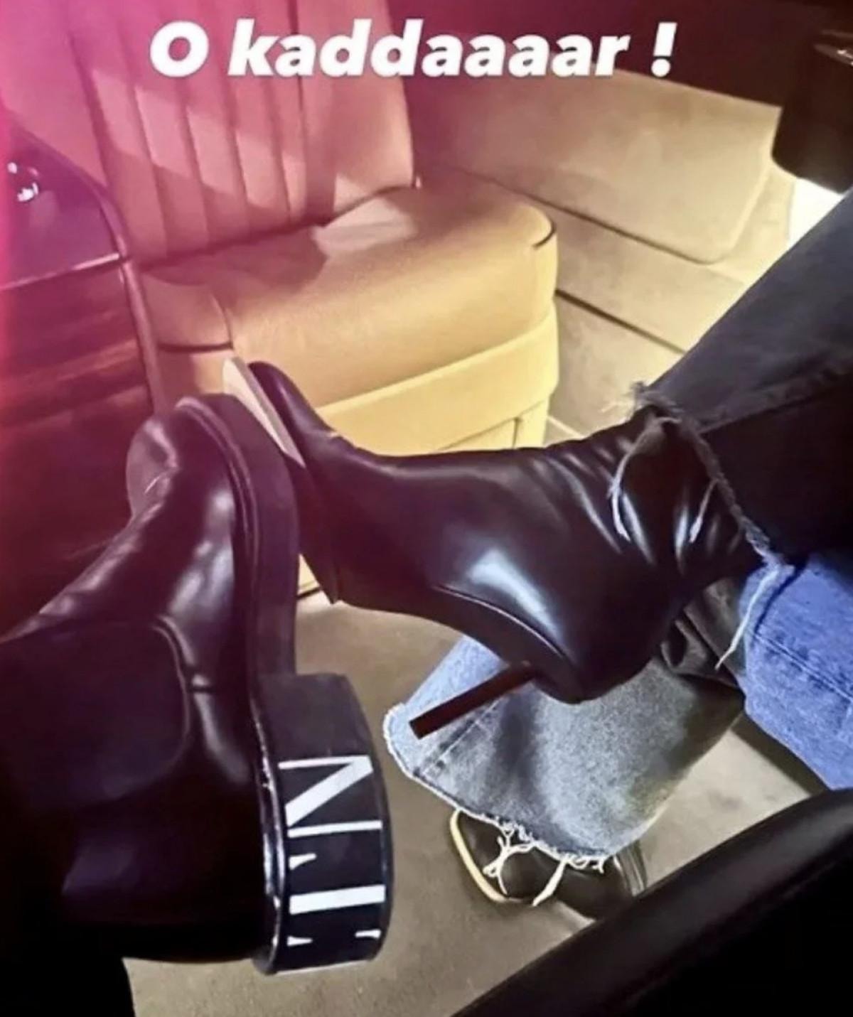 Sosyal medya hesabından, "O kadar'" notuyla paylaştığı fotoğraftaki topuklu ayakkabının sahibi merak konusu oldu.