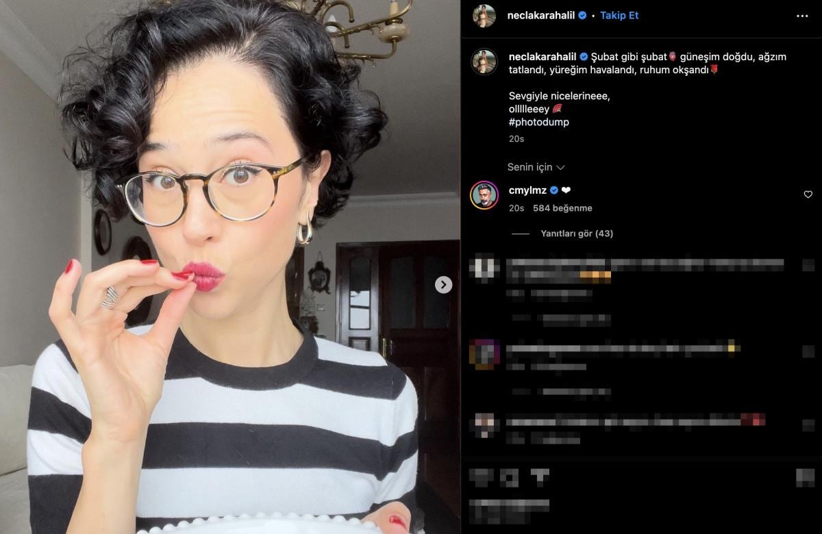 "Şubat gibi şubat güneşim doğdu, ağzım tatlandı, yüreğim havalandı, ruhum okşandı. Sevgiyle nicelerine, oley" notunu düştüğü son paylaşımıyla öne çıktığı sırada Cem Yılmaz'ın yolladığı kalp emojisi aşkı belgelemiş oldu.