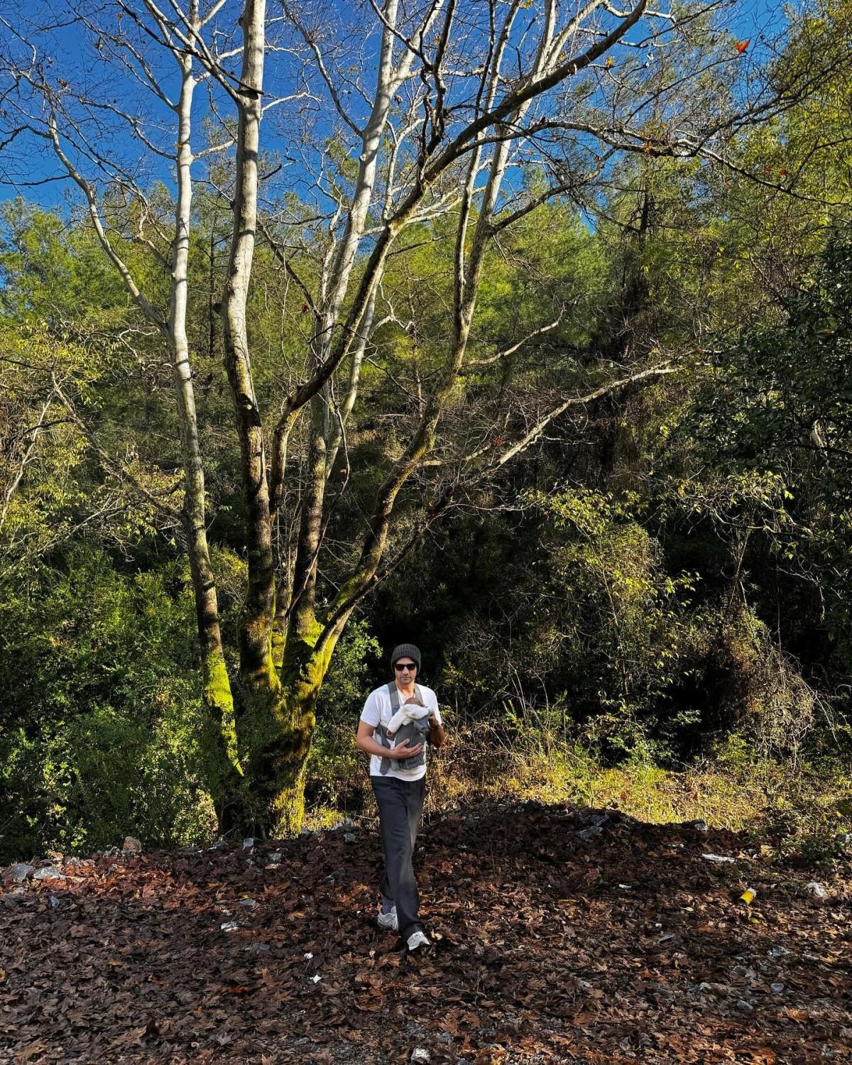Setten arda kalan vaktinin tamamını oğlu ile geçiren Urgancıoğlu, dün 17 günlük olan Ardıç ile doğa yürüyüşüne çıktı.