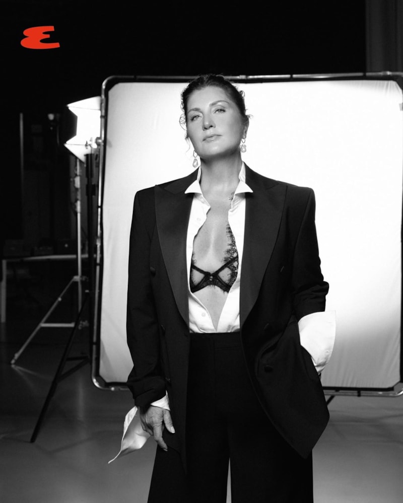 Can, beyaz gömlek-ceket kombiniyle dikkat çekti. Gömlek düğmelerini açarak dantelli sütyenini de gösteren ve pozlar veren Sibel Can, "Kıyafet müziğin görünmeyen bir parçasıdır.