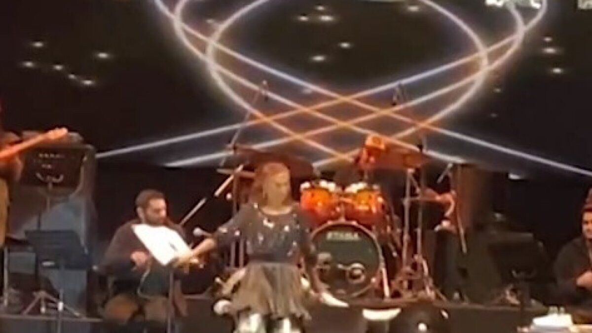 Kendine has çılgın dansı eşliğinde sahnede üstünü değiştirmeye başlayan Tilbe, dengesini kaybederek düştü.