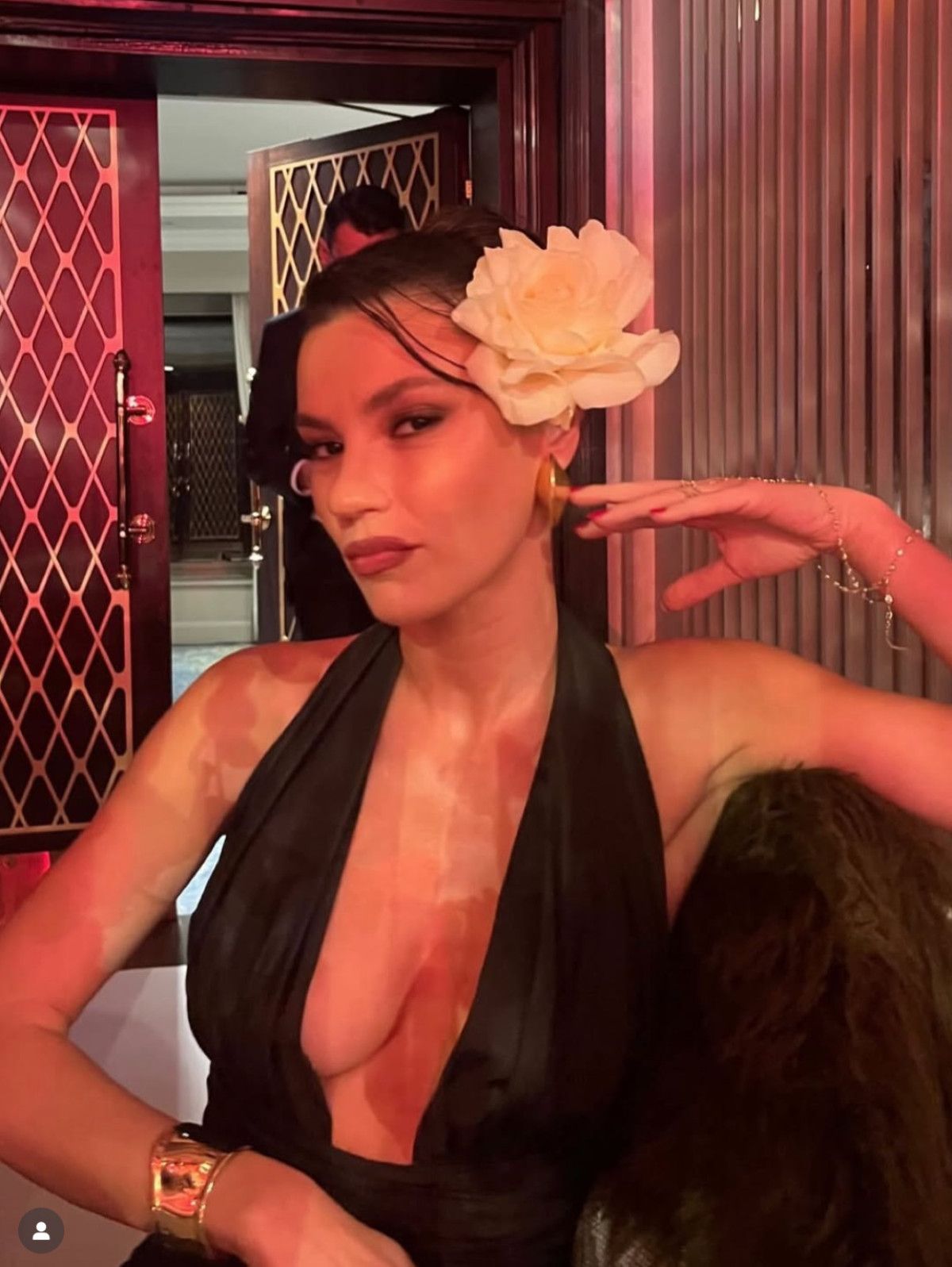 - Derin dekolteli elbisesiyle tüm bakışları üzerinde topladı.