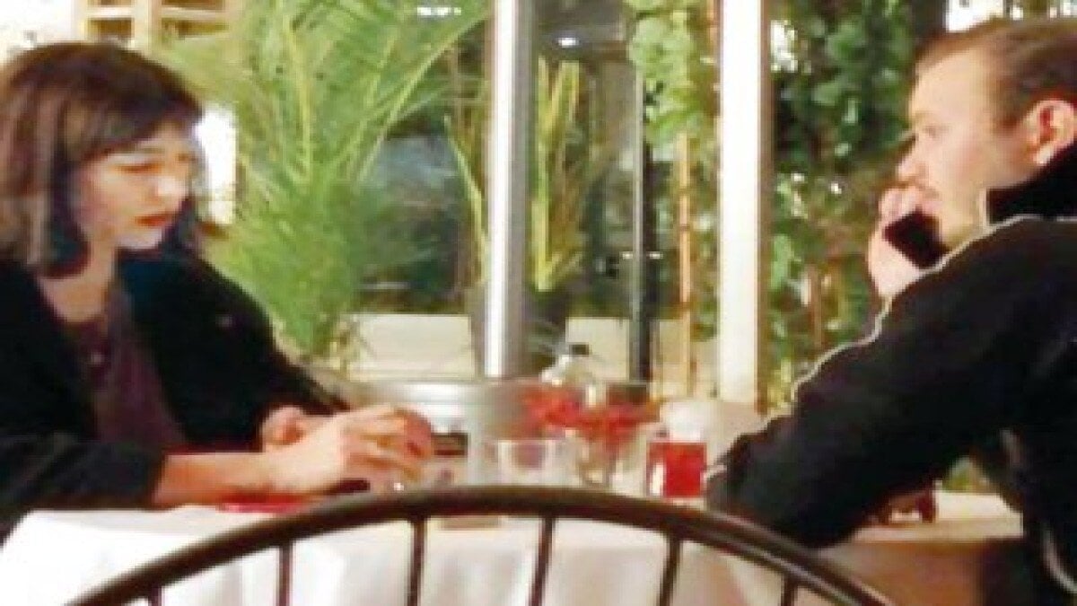 Çift, alışveriş merkezinde bulunan bir mekanda Sevgililer Günü yemeği yedi. Çiftin, birbirleri ile konuşmak yerine uzun süre telefonlarıyla vakit geçirmesi dikkatlerden kaçmadı.