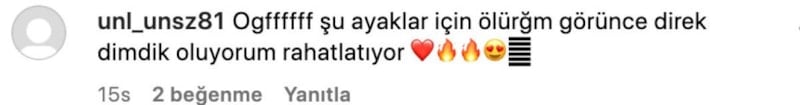 Instagram hesabında 2,1 milyon takipçisi bulunan ünlü şarkıcı, en fazla yorumu ayaklarına aldı. Takipçileri ısrarla "'Ayak tabanını göster', 'Ölürüm bu ayaklara'" gibi yorumlar yaptı.