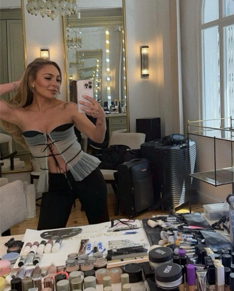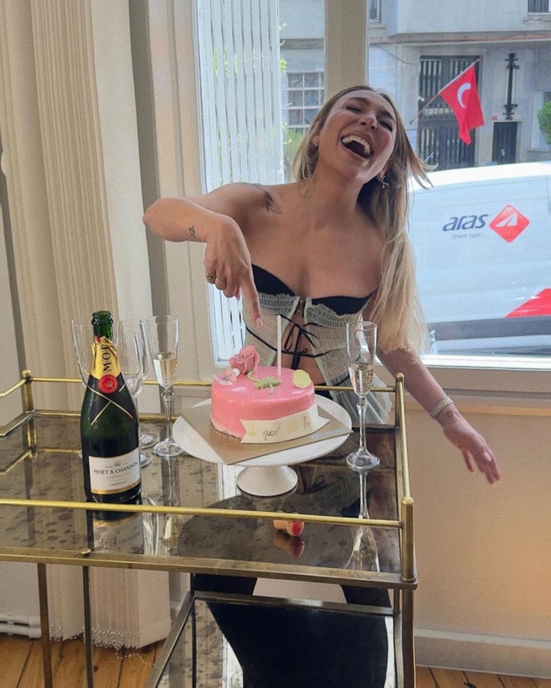 Ünlü isim, yeni yaşını arkadaşlarıyla birlikte evinde kutladı. Sali, siyah kot pantolon ve tül detaylı bir büstiyer ile peş peşe poz verdi.