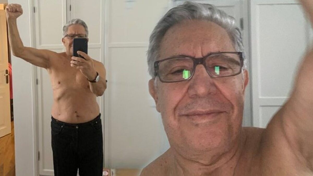 Zülfü Livaneli, sosyal medya hesabından, "Göbek içeri, kol dışarı" mesajıyla yarı çıplak görüntüsünü yayınladı.