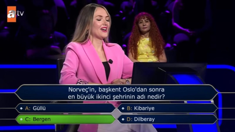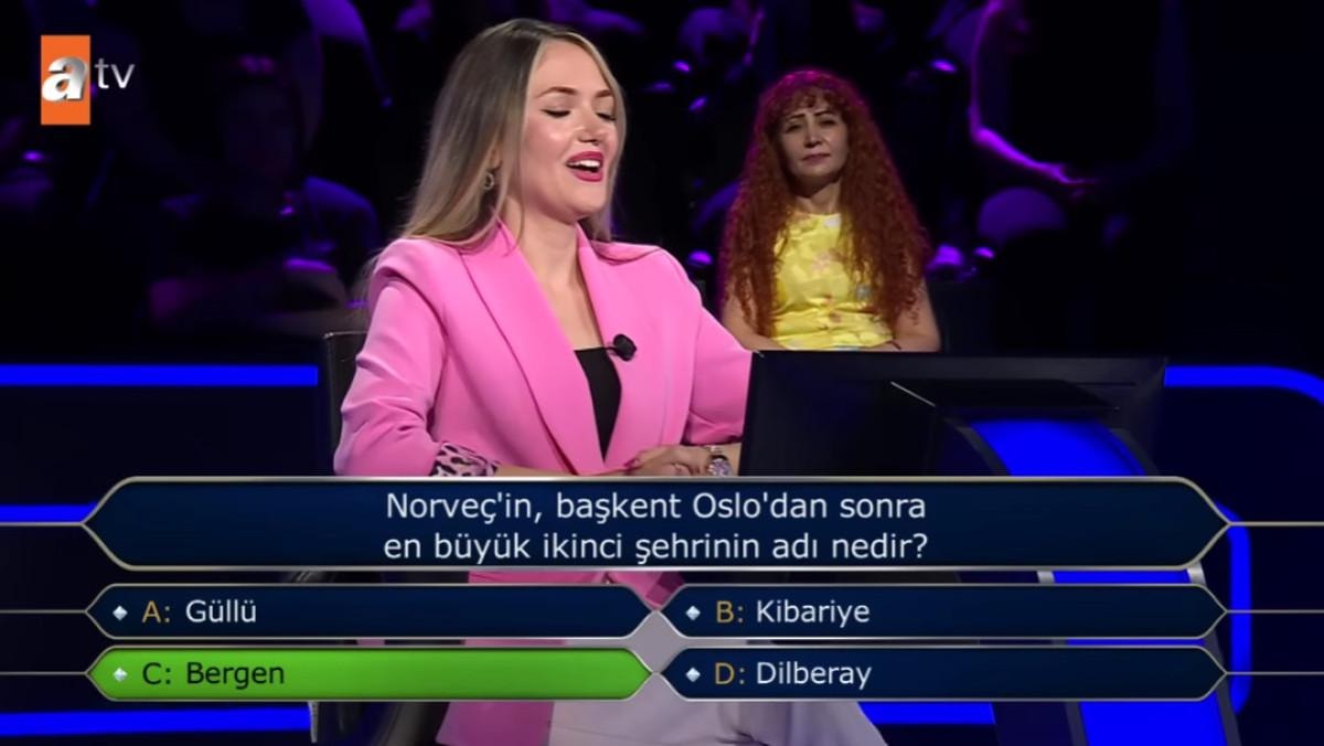 Soruya C şıkkı "Bergen" diyen yarışmacı doğru yanıt verdi.