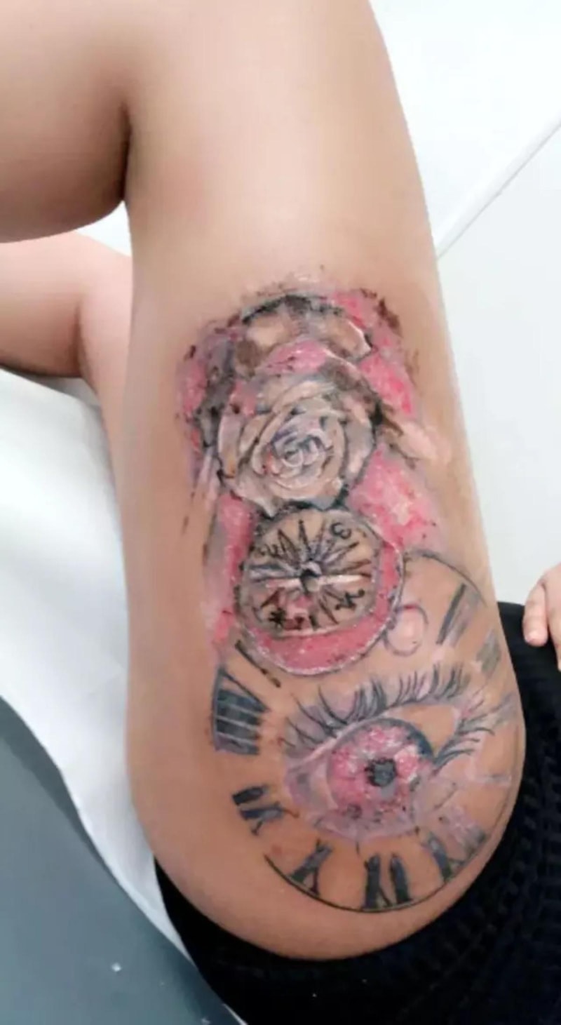 Bacağının üst kısmına göz, saat, pusula ve gül desenli dövme yaptıran Shyann Johanneson, bacağını kaybetme tehlikesiyle karşı karşıya kaldı.