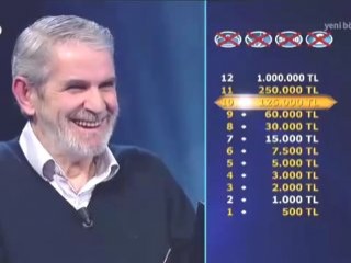 60 yaşındaki yarışmacı 250 binlik soruyu gördü İZLE