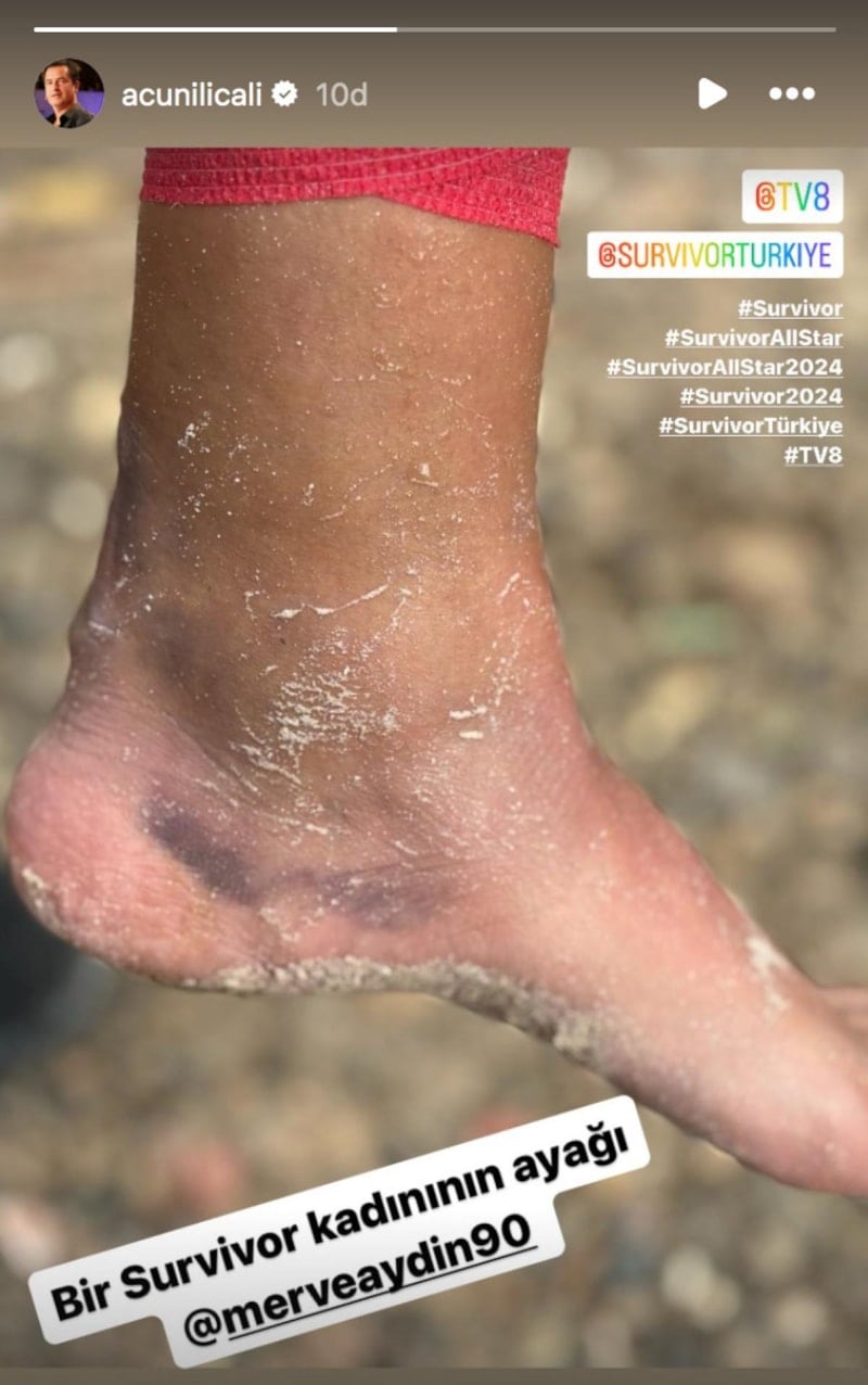 Acun Ilıcalı, Instagram hesabından yaptığı paylaşımda yarışmacılardan Merve Aydın'ın ayağını paylaştı.
