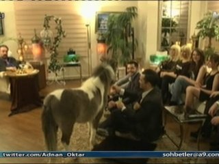 Adnan Oktar, evinden yapılan yayına 'at' çıkardı. Burada atı severek "Canlı yayından at geçti" esprisine gönderme yaptı.