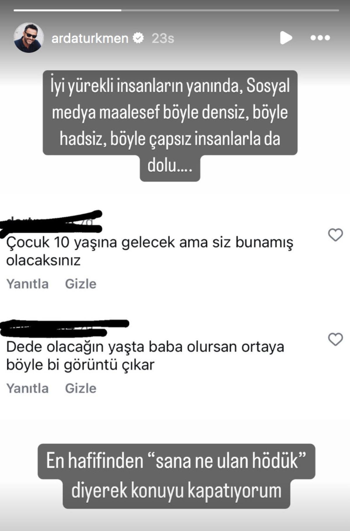 Ünlü şef, gelen yorumları Instagram hesabından paylaşarak "İyi yürekli insanların yanında sosyal medya maalesef böyle densiz, böyle hadsiz, böyle çapsız insanlarla da dolu" notunu ekledi.