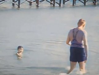 MANEVİ KIZIYLA DENİZE GİRDİĞİ ANLAR