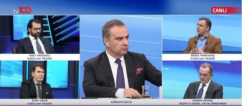 tv100 ekranlarında yayınlanan "Taksim Meydanı" adlı programda yorumculuk yapan gazeteci Barış Yarkadaş ile moderatör Gürkan Hacır, kanal yönetimiyle yollarını ayırdığını duyurdu.