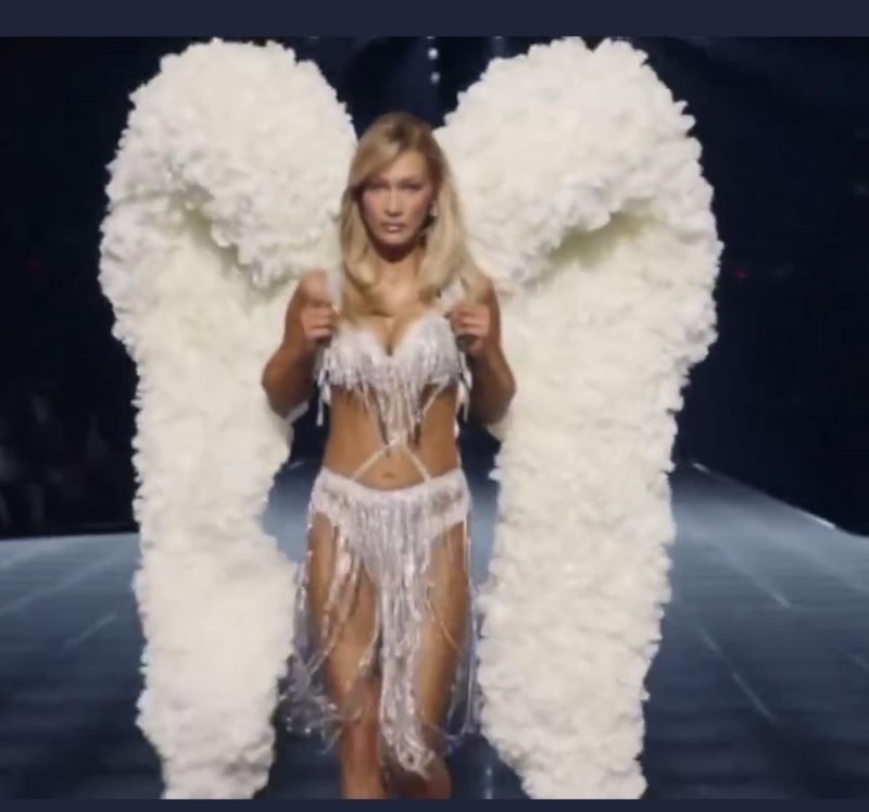 Henüz yeni yeni toparlanan Bella Hadid'in 23 kg ağırlığındaki kanatla podyumda yürüdüğü anlar viral oldu.