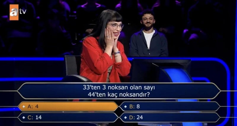 Oktay Kaynarca'nın sunduğu Kim Milyoner Olmak İster adlı bilgi yarışmasında, basit bir matematik sorusu yöneltilen yarışmacının, joker haklarını erken kullanması ve kolay bir matematik sorusunda elenmesi sosyal medyada çok konuşuldu.