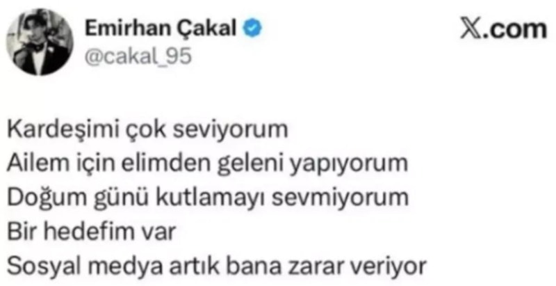 Akabinde ise Çakal lakaplı Emirhan Çakal’ın ‘Sosyal medya bana artık zarar veriyor’ paylaşımı kafaları iyice karıştırdı.