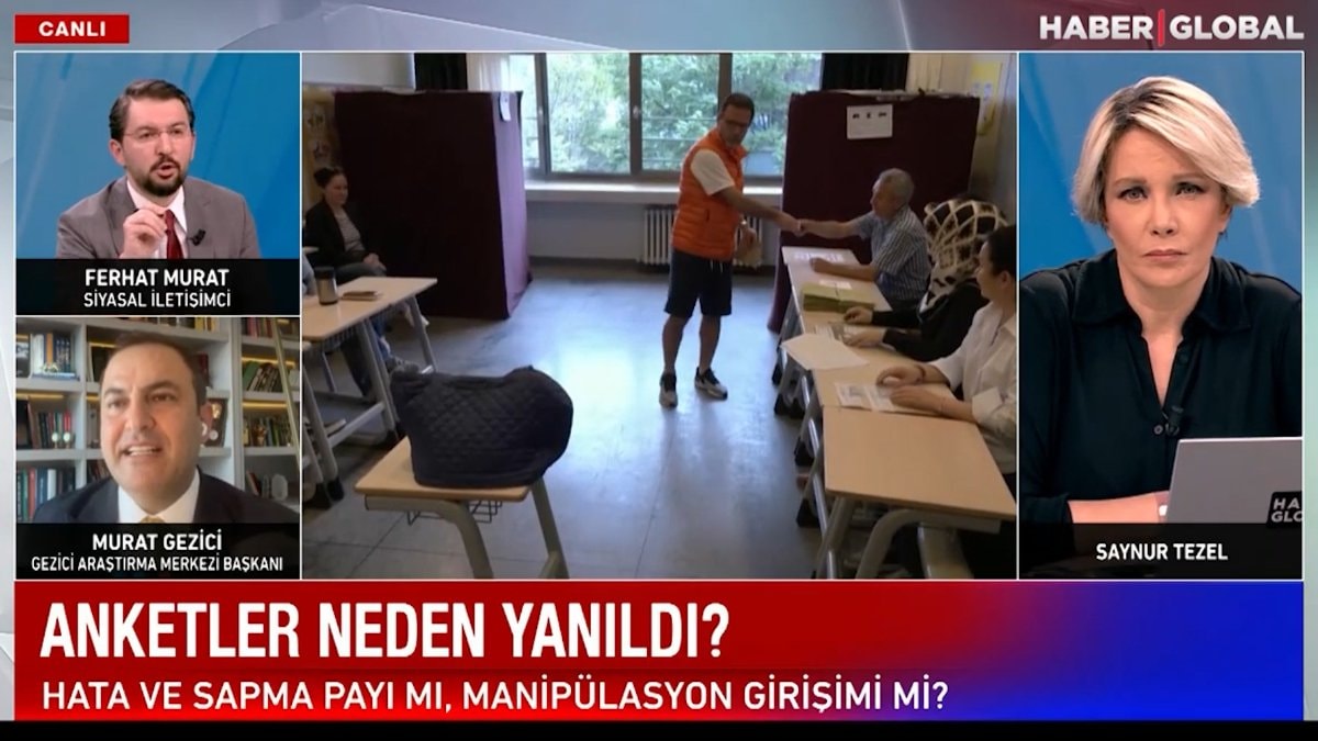 Bu kapsamda Haber Global'de canlı yayına konuk olan Gezici Araştırma Şirketi Başkanı Murat Gezici ile Siyasal İletişimci Ferhat Murat seçim sonuçlarını değerlendirdi.