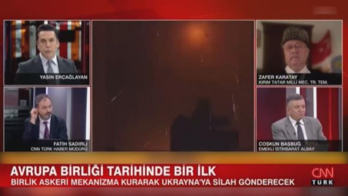 Moderatör Yasin Erçağlayan, "Uçaksavar atışlarının yoğun şekilde yapıldığı geceye dair sıcak bir görüntü" ifadelerini kullanırken, görüntülerin Kiev'den olduğunu iddia etti.