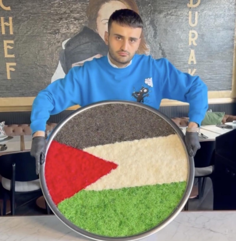Burak Özdemir, Gazze'de yaşanan katliama tepkisini göstermeye devam ediyor. Ünlü isim yaptığı tatlıda Filistin bayrağını resmetti ve Filistinlilere desteğini gösterdi.