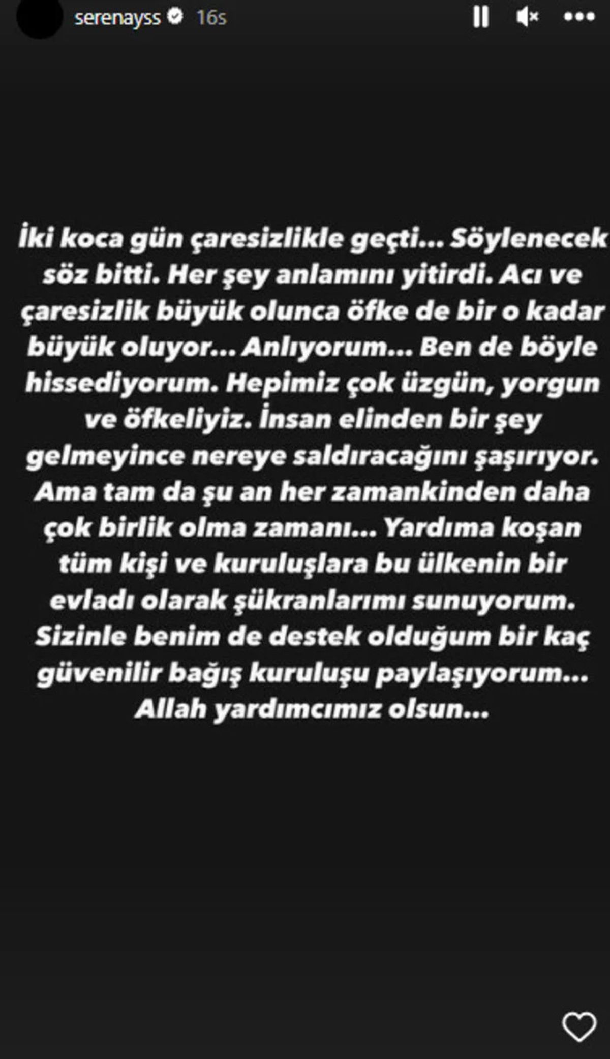 Instagram hesabından açıklamada bulunan Sarıkaya, ''Acı büyük olunca öfke de büyük oluyor. Anlıyorum'' sözleriyle üzüntüsünü dile getirdi.
